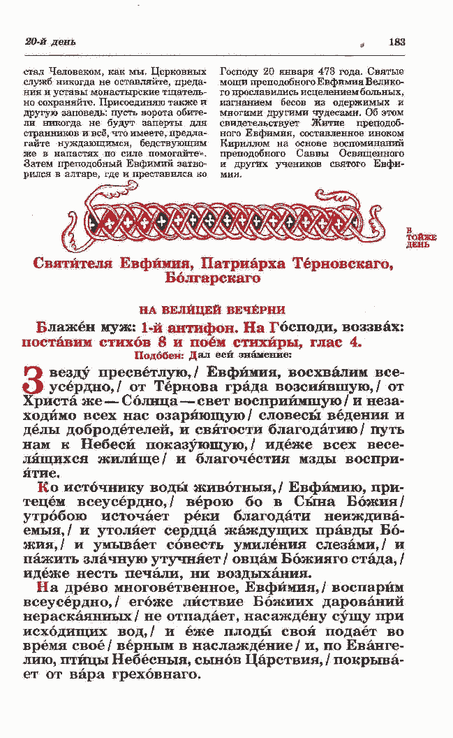усердно,/ от Тернова града возсиявшую, / от Христа же ? Солнца?свет восприймшую/ и неза- ходймо всех нас озаряющую/ словесы ведения и делы добродетелей, и святости благодатию/ путь нам к Небесй показующую, / идеже всех весе- лящихся жилище/ и благочестия мзды воспри- ятие. Ко источнику воды животныя,/ Евфймию, при-