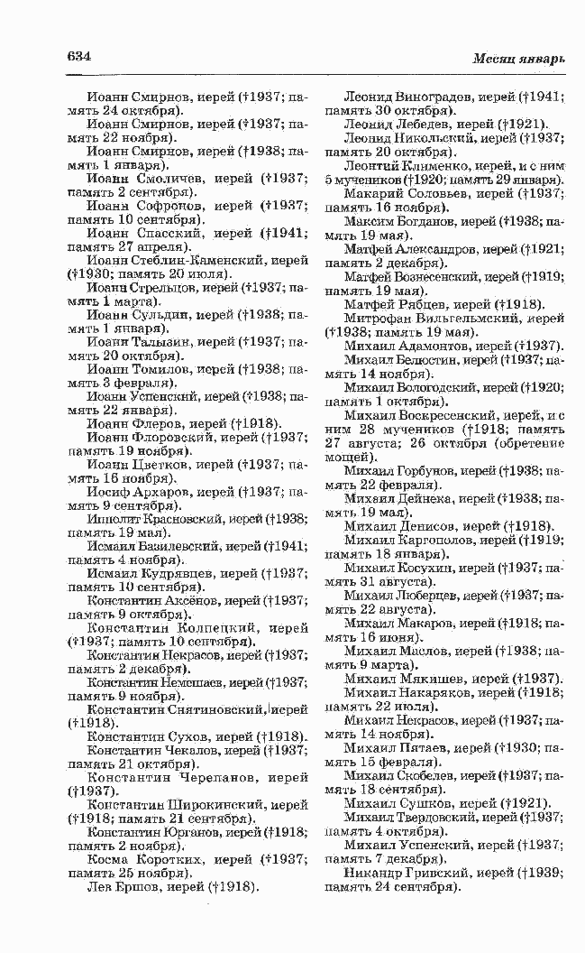 мять 1 января). Иоанн Смоличев, иерей (+1937;