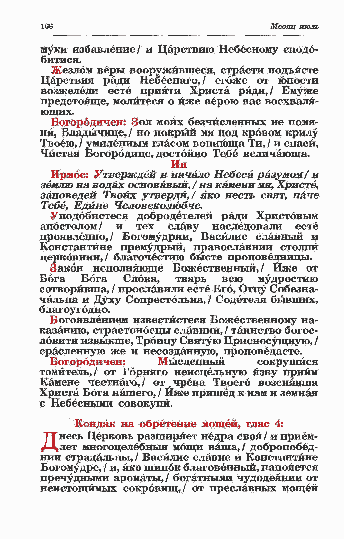 лет многоцелебныя мощи ваша,/ добропобед- нии страдальцы,/ Васйлие славне и Константине Богомудре, / и, яко шипок благовонньш, напояется пречудными ароматы,/ богатными чудодеянии от неистощимых сокровищ,/ от преславных мощей |
