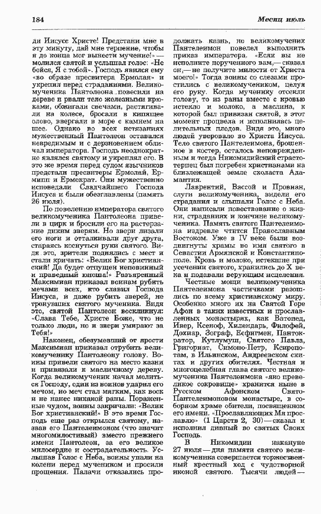 слуги великомученика, видели его страдания и слышали Голос с Неба. Они написали повествование о жиз- ни, страданиях и кончине великому- ченика. Память святого Пантелеймо- на издревле чтится Православным Востоком. Уже в IV веке были воз- двигнуты храмы во имя святого в Севастии Армянской и Константино- поле. Кровь и молоко, истекшие при усечении святого, хранились до X ве- ка и подавали верующим исцеления. Честные мощи великомученика