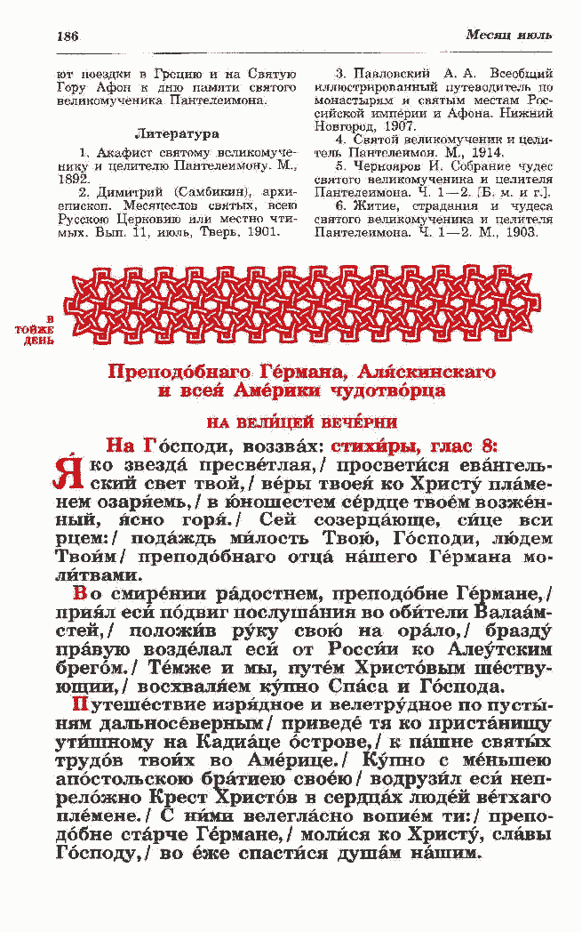 епископ. Месяцеслов святых, всею Русскою Церковию или местно чти- мых. Вып. 11, июль, Тверь, 1901. |