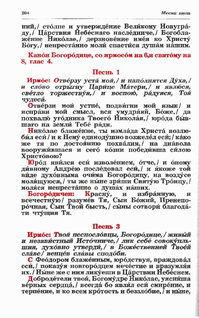 ду,/ Царствия Йебеснаго наследниче,/ Богобла- женне Николае,/ дерзновение имея ко Христу Богу, / непрестанно моли спастйся душам нашим. Канон Богородице, со ирмосом на 6,и святому на