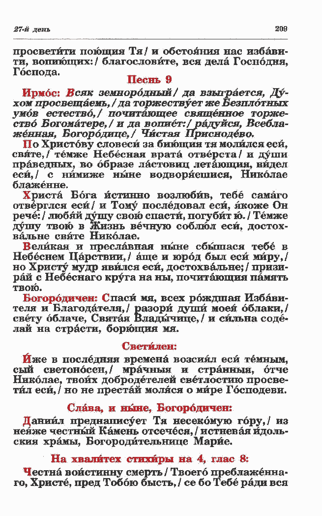 отверг лея еси/ и Тому последовал еси, якоже Он рече: / любяй душу свою спасти, погубит ю. / Темже душу твою в Жизнь вечную соблюл еси, достох- вальне святе Николае. Великая и преславная ныне сбышася тебе в