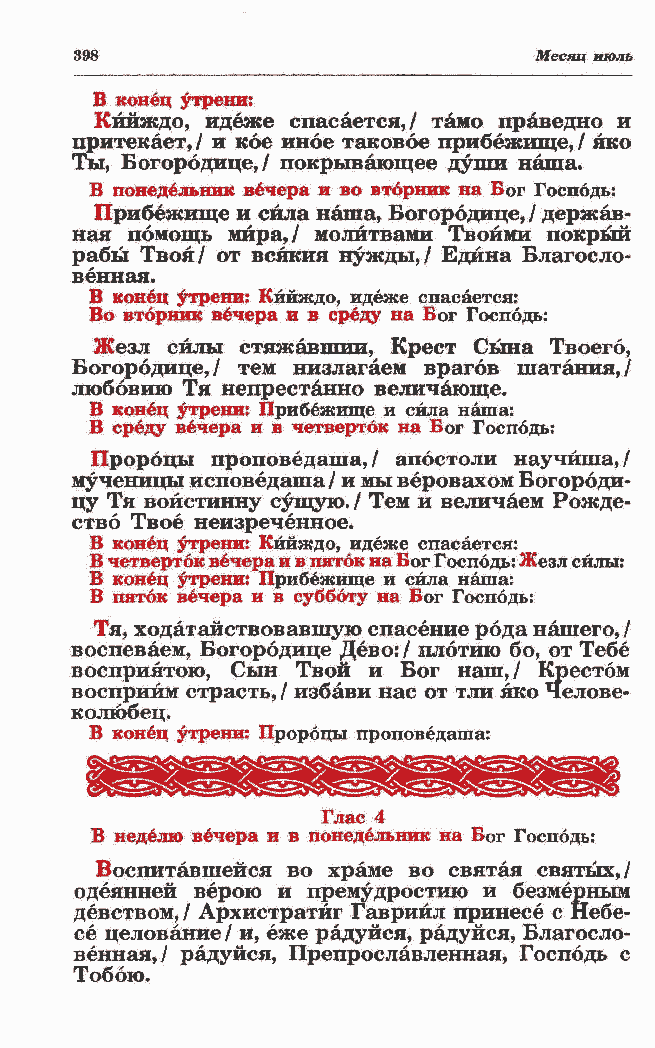 притекает,/ и кое иное таковое прибежище,/ яко Ты, Богородице,/ покрывающее души наша. В понедельник вечера и во вторник на Бог Господь: