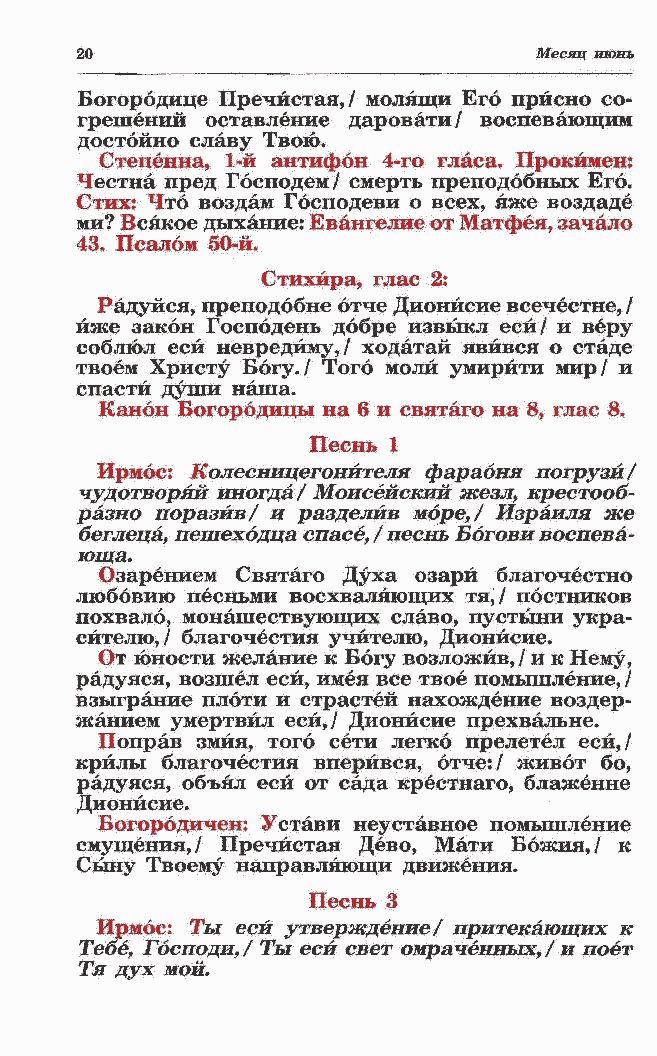 любовию песньми восхваляющих тя,/ постников похвало, монашествующих славо, пустыни укра- сйтелю,/ благочестия учителю, Дионйсие. От юности желание к Богу возложив, / и к Нему,