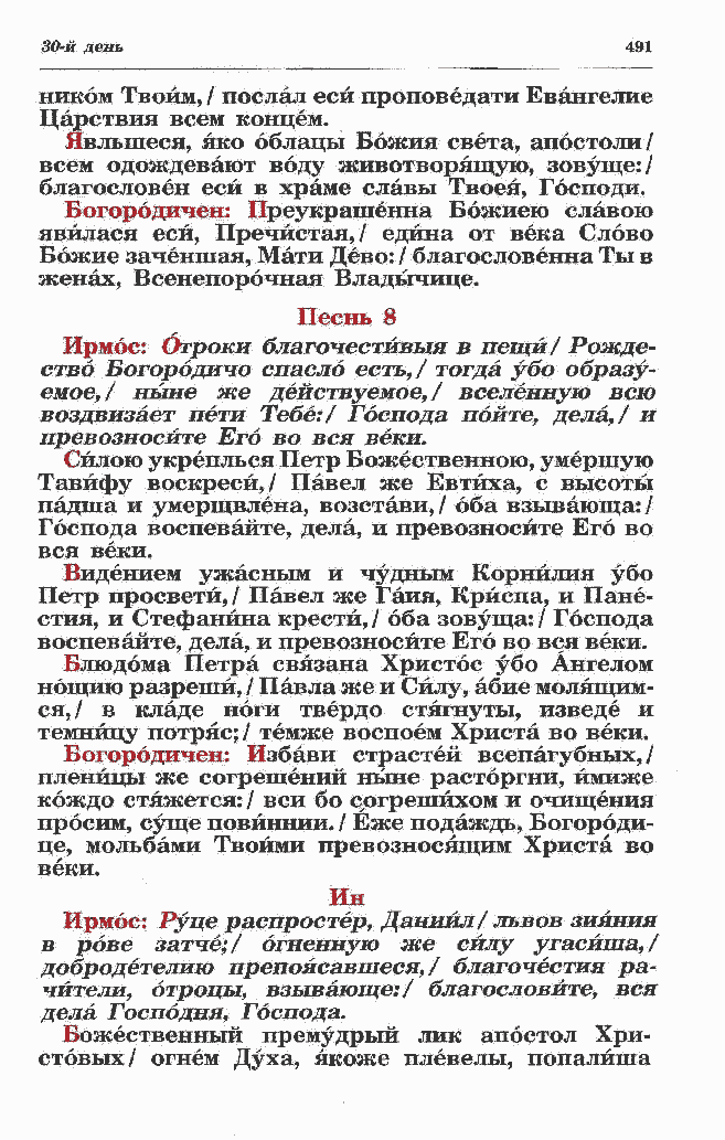 пленйцы же согрешений ныне расторгни, ймиже кождо стяжется: / вси бо согрешйхом и очищения просим, суще повйннии. / Еже подаждь, Богороди- це, мольбами Твоими превозносящим Христа во веки. Ин