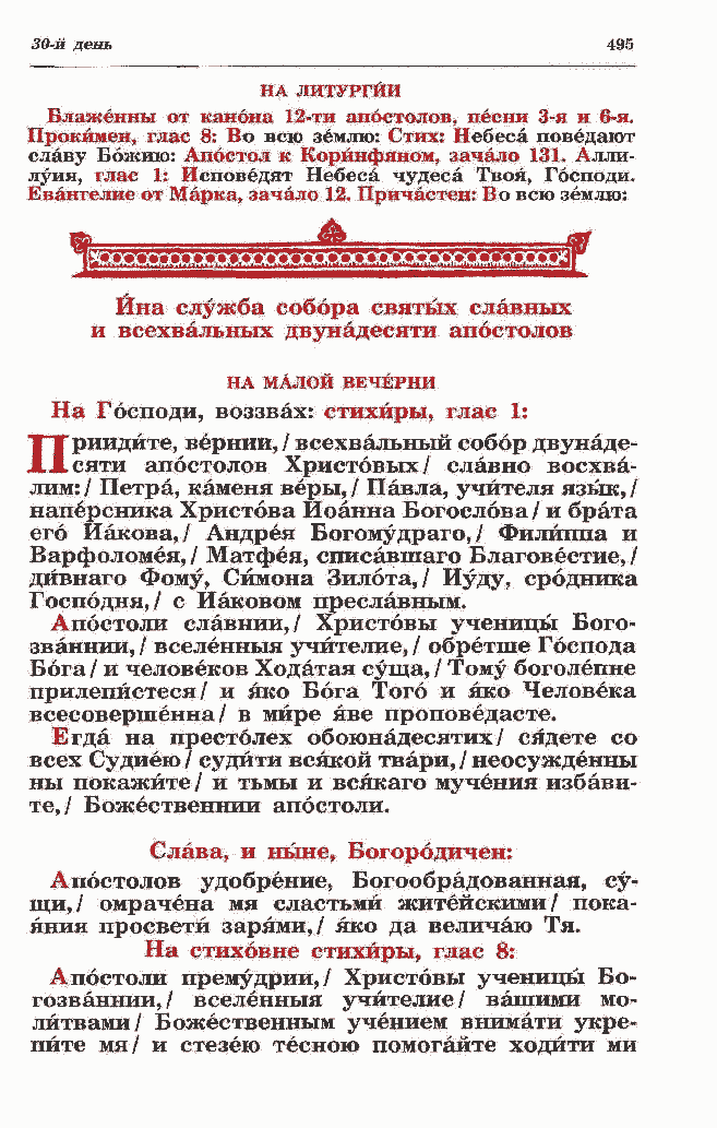 и всехвальных двунадесяти апостолов НА МАЛОЙ ВЕЧЕРНИ
