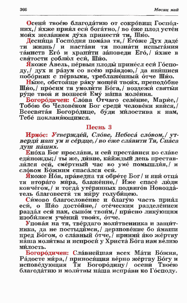 еси, о Шйо достойне,/ отеческим разделением раздал еси нам, сыном твоим,/ присно ликующим изобилием учений твоих, отче. Уповая на тя, твердаго молитвенника и защит-