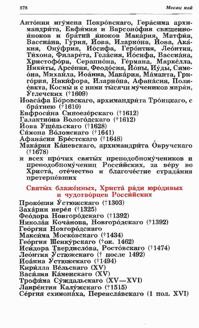 преподобномучениц Российских, за веру во Христа, отечество и благочестие страдания претерпевших Святых блаженных, Христа ради юродивых