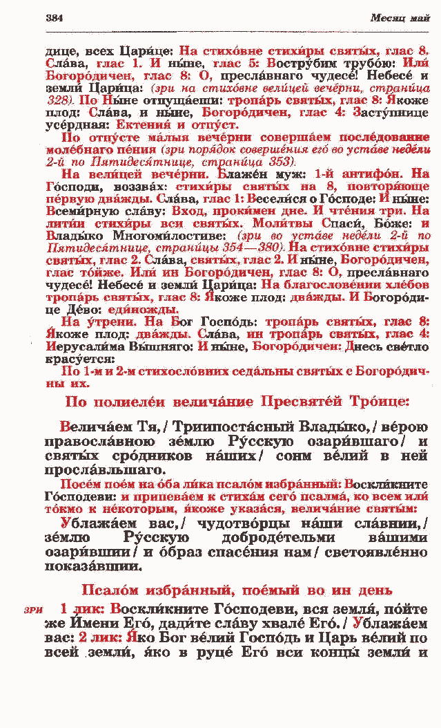 православною землю Русскую озарйвшаго/ и святых сродников наших/ сонм велий в ней прославлынаго. Посем поем на оба лика псалом избранный: Воскликните