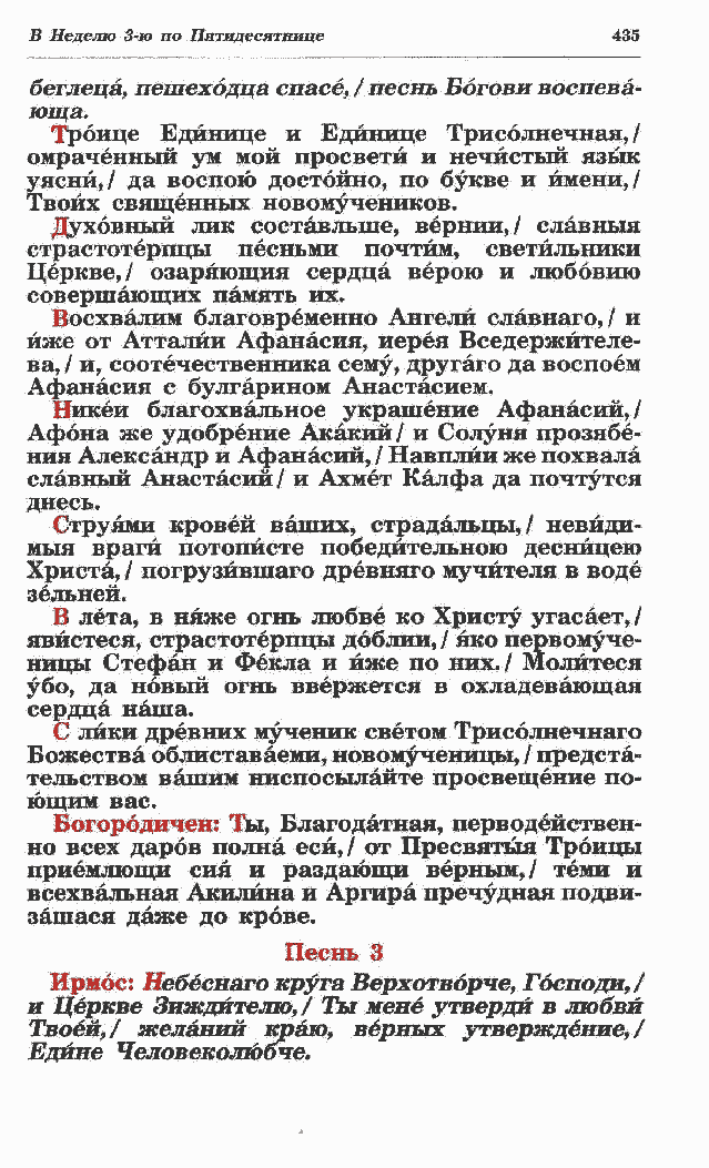 но всех даров полна еси,/ от Пресвятыя Троицы приемлющи сия и раздающи верным,/ теми и всехвальная Акилина и Аргира пречудная подви- зашася даже до крове. Песнь 3