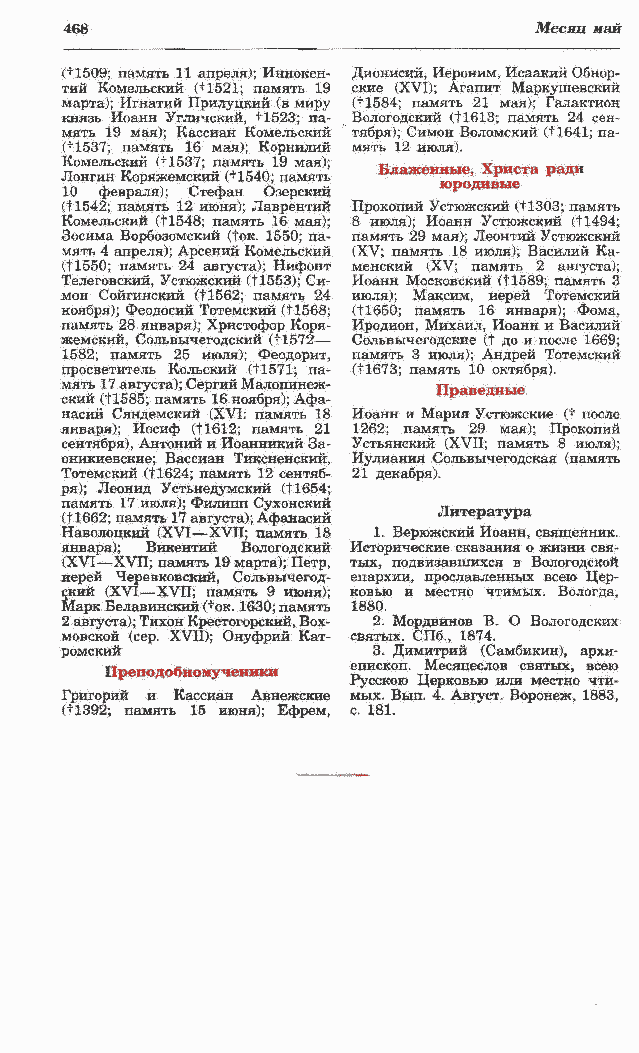 1262; память 29 мая); Прокопий Устьянский (XVII; память 8 июля); Иулиания Сольвычегодская (память 21 декабря). Литература