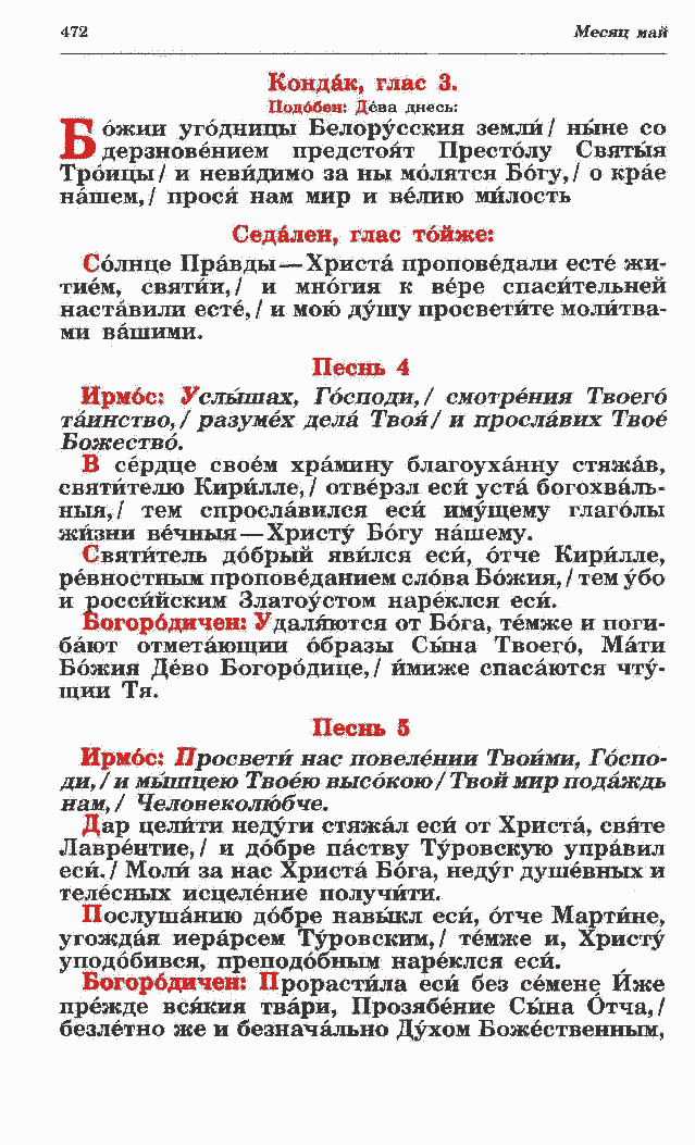 тием, святйи,/ и мнбгия к вере спасйтельней наставили есте, / и мою душу просветите молитва- ми вашими. Песнь 4
