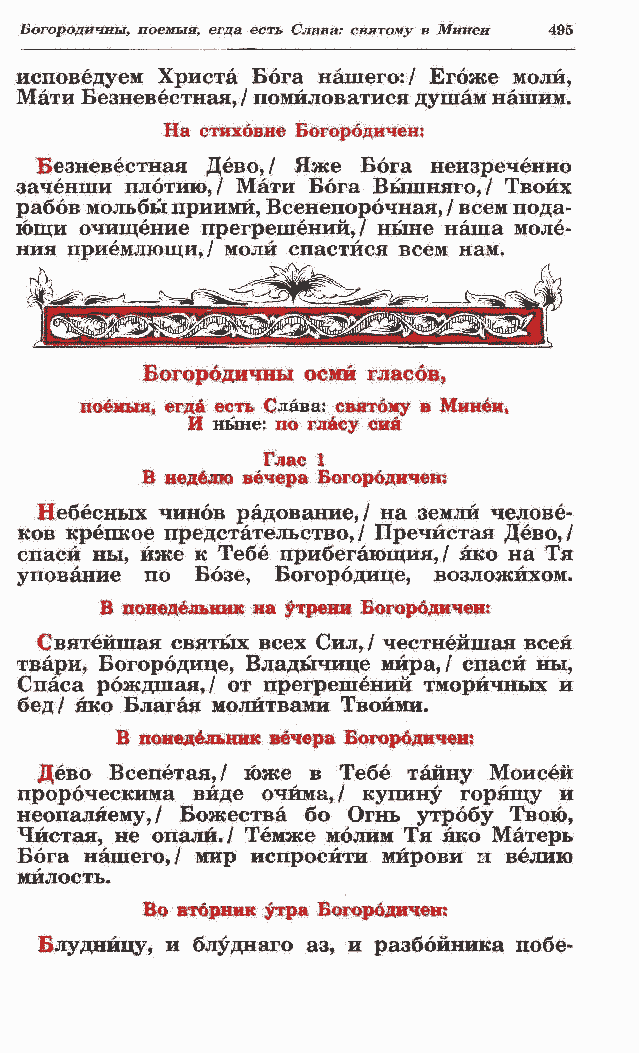 Богородичиы, поемыя, егда есть Слава: святому в Минеи 495