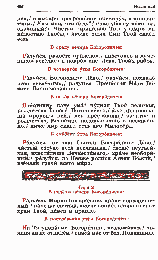 всея вселенныя,/ радуйся, Пречистая Мати Бо- жия, Благословенная. В пяток вечера Богородичен: