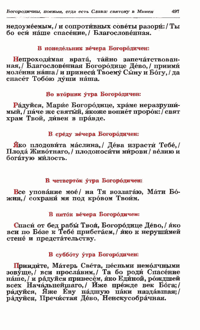 Богородичны, поемыя, егда есть Слава: святому в Минеи 497