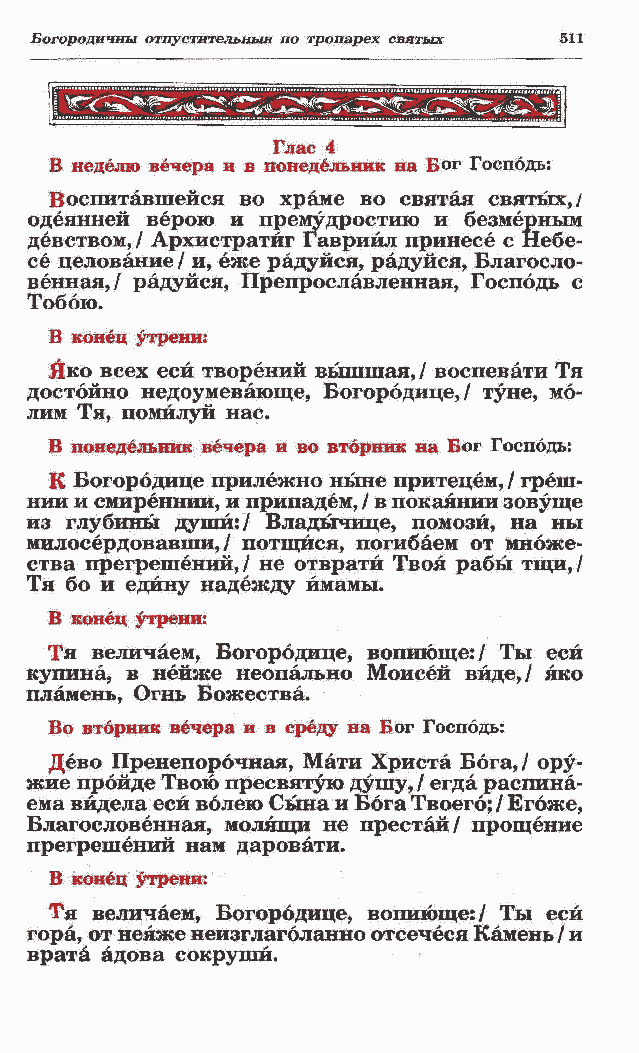 достойно недоумевающе, Богородице,/ туне, мо- лим Тя, помилуй нас. В понедельник вечера и во вторник на Бог Господь: