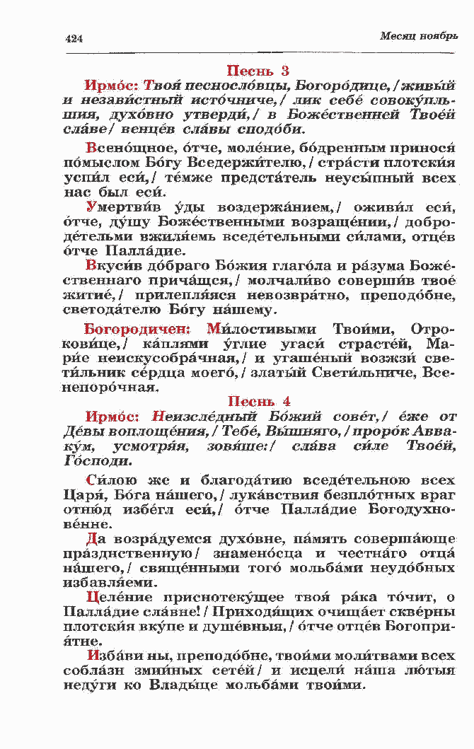 отче, душу Божественными возращении,/ добро- детельми вжиляемь вседетельными силами, отцев отче Палладие. Вкусив дббраго Ббжия глагола и разума Боже-