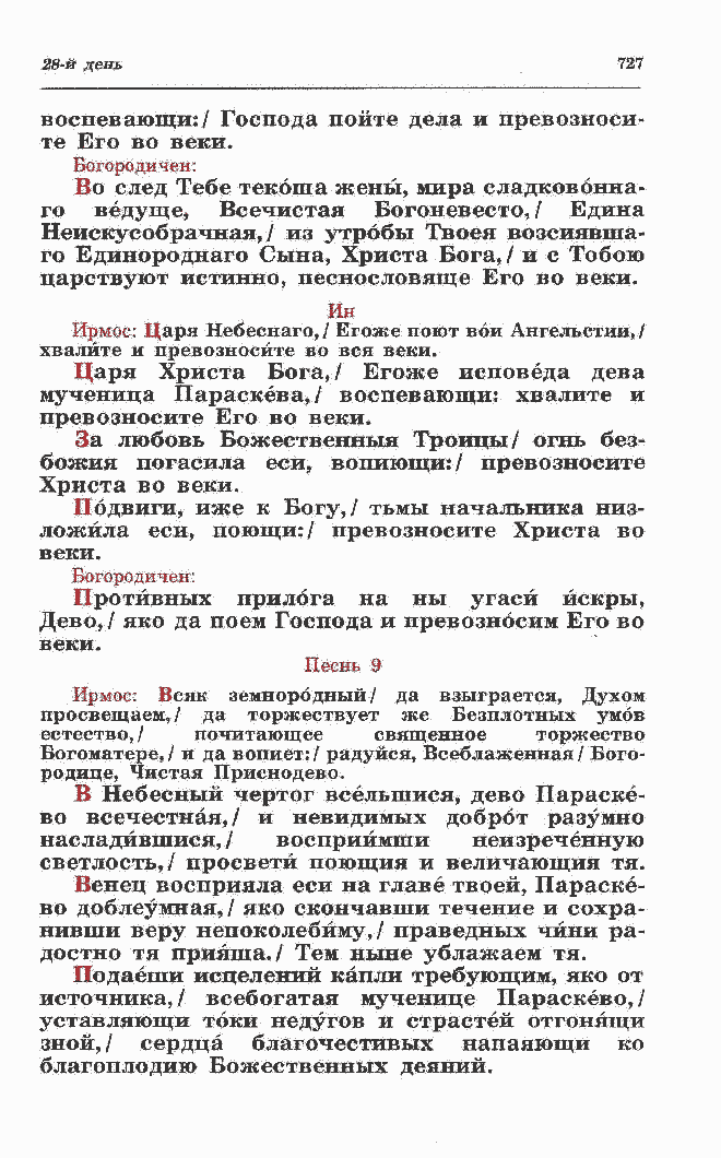 родице, Чистая Приснодево. В Небесный чертог всельшися, дево Параске-