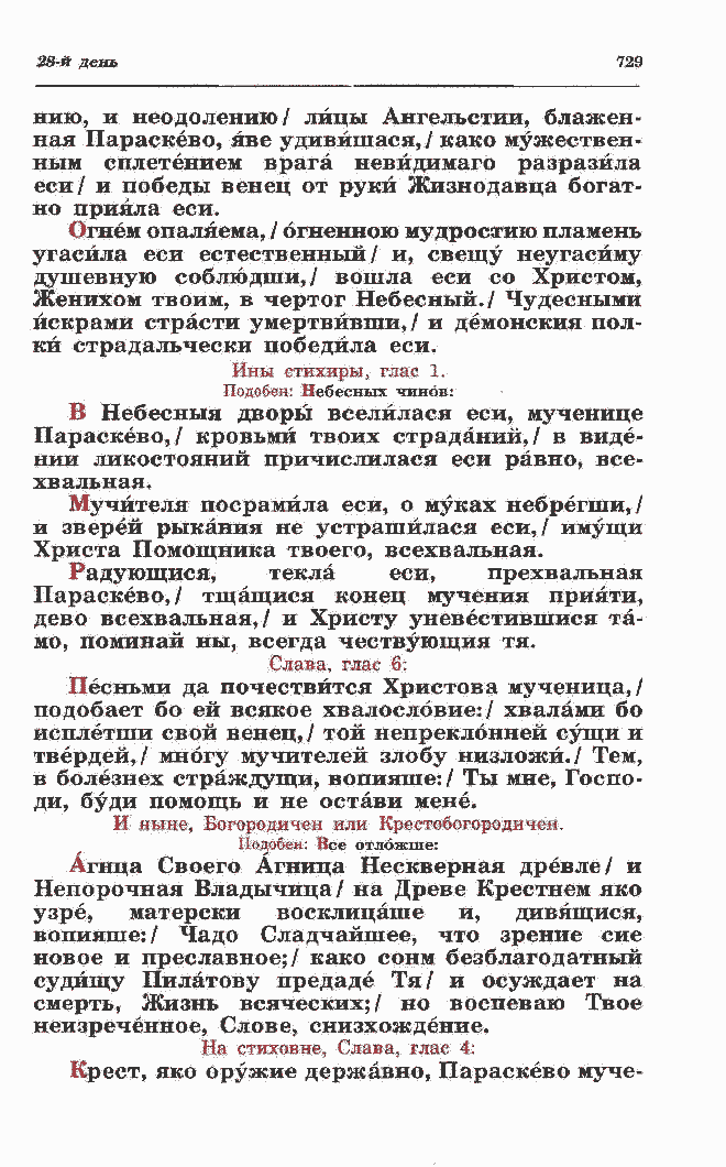 Параскево,/ кровьмй твоих страданий,/ в виде- нии ликостояний причислилася еси равно, все- хвальная. Мучителя посрамила еси, о муках небрегши,/