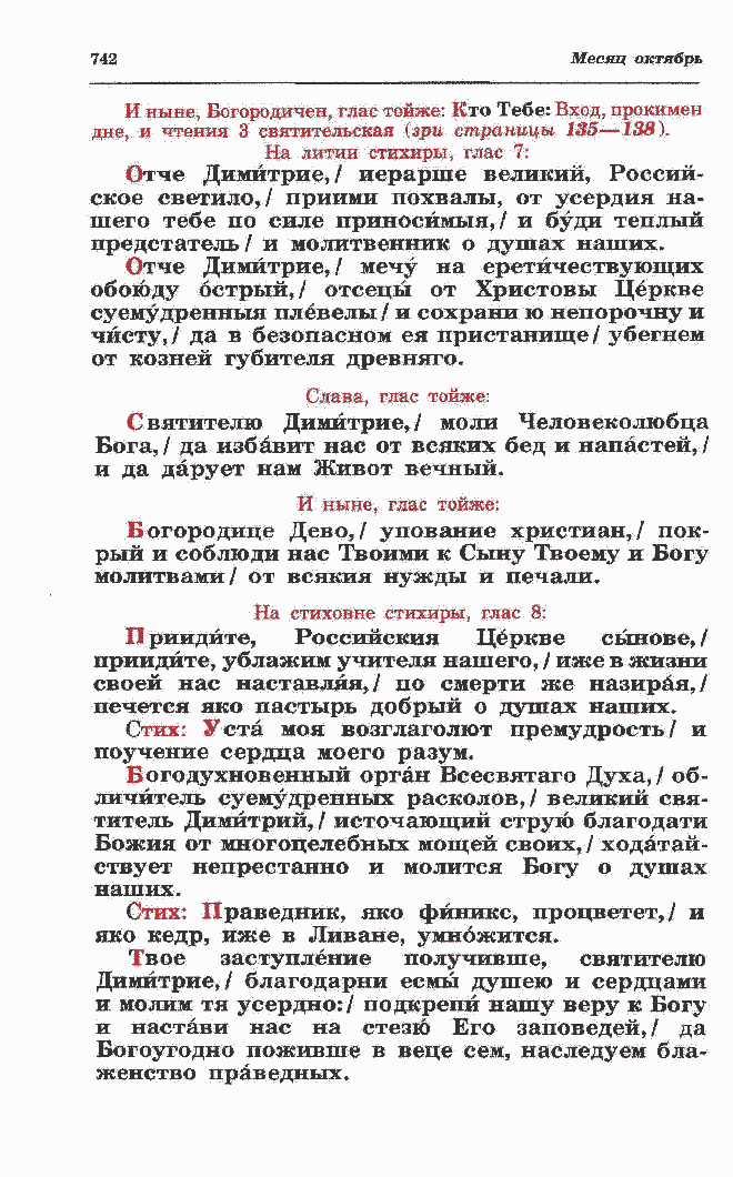 дне, и чтения 3 святительская (зри страницы 135?138). На литии стихиры, глас 7: Отче Димйтрие, / иерарше великий, Россий-