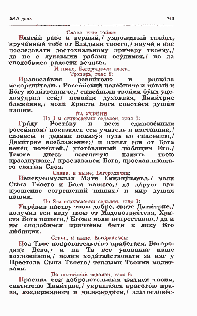 Богу молйтвенниче, / списаньми твоими буих уце- ломудрил еси;/ цевнице духовная, Димитрие блаженне, / моли Христа Бога спастйся душам нашим. т_ НА УТРЕНИ