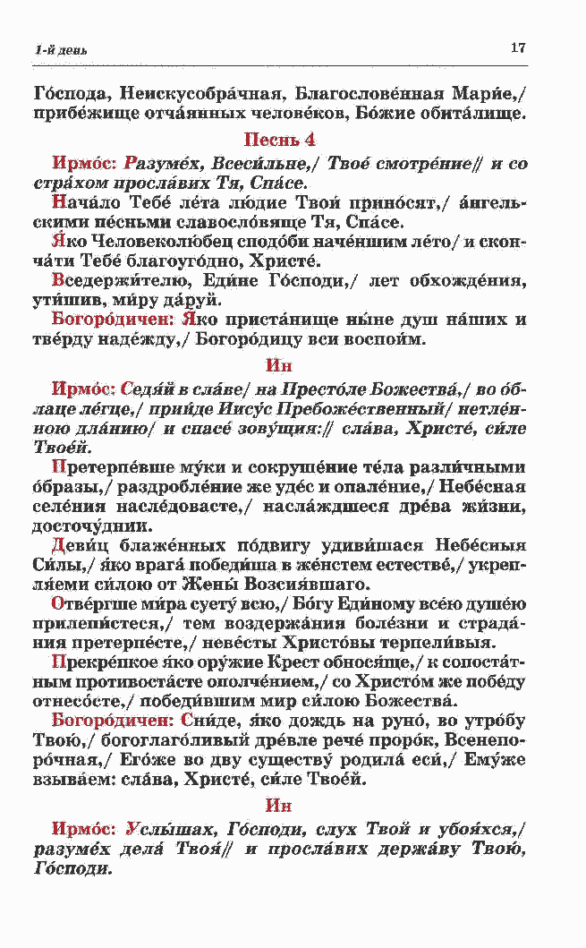 ным противостасте ополчением,/ со Христом же победу отнесбсте,/ победившим мир силою Божества. Богорбдичен: Снйде, яко дождь на руно, во утробу