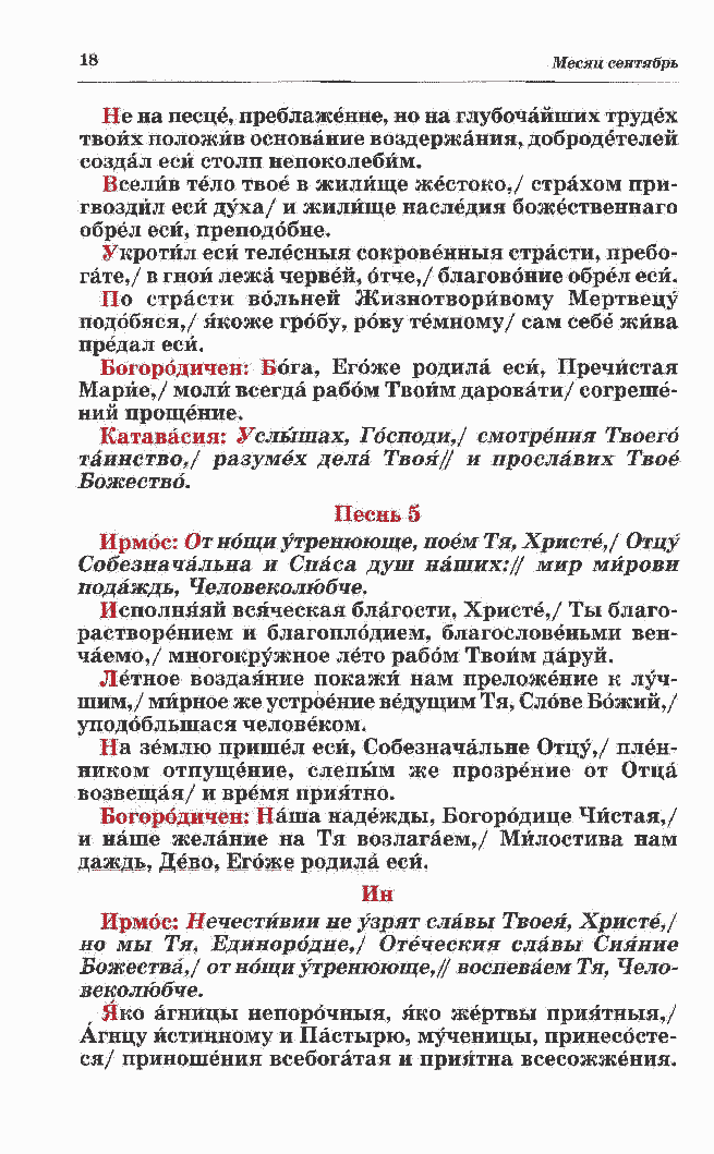 Марйе,/ моли всегда рабом Твоим даровати/ согреше- ний прощение. Катавасия: Услышах, Господи,/ смотрения Твоего