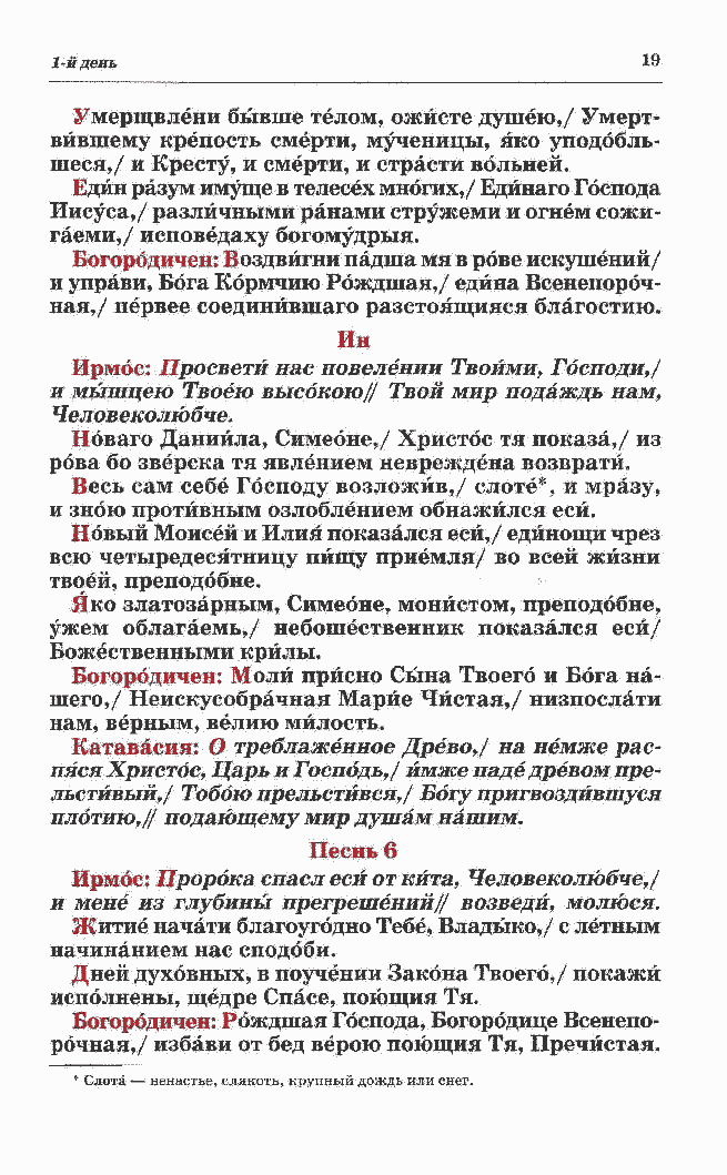 рбчная,/ избави от бед верою поющия Тя, Пречистая. * Слота ? ненастье, слякоть, крупный дождь или снег.