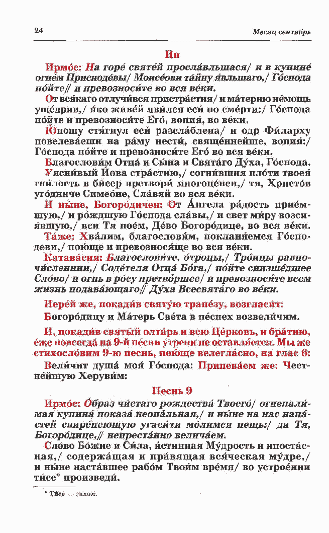 огнем Приснодевы/ Моисеови тайну явльшаго,/ Господа пойте// и превозносите во вся веки. От всякаго отлучйвея пристрастия/ и материю немощь