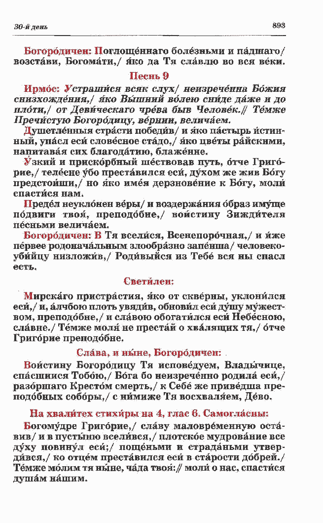 еси,/ и, алчбою плоть увядйв, обновил еси душу мужест- вом, преподобие,/ и славою обогатился еси Небесною, славне./ Темже моля не престай о хвалящих тя,/ отче Григбрие преподобие. Слава, и ныне, Богорбдичен:
