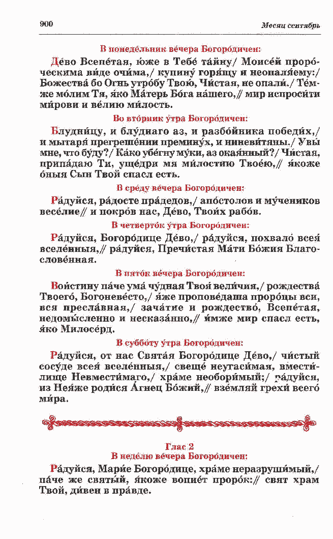 вселенныя,/ радуйся, Пречистая Мати Ббжия Благо- словенная. В пяток вечера Богородичен: